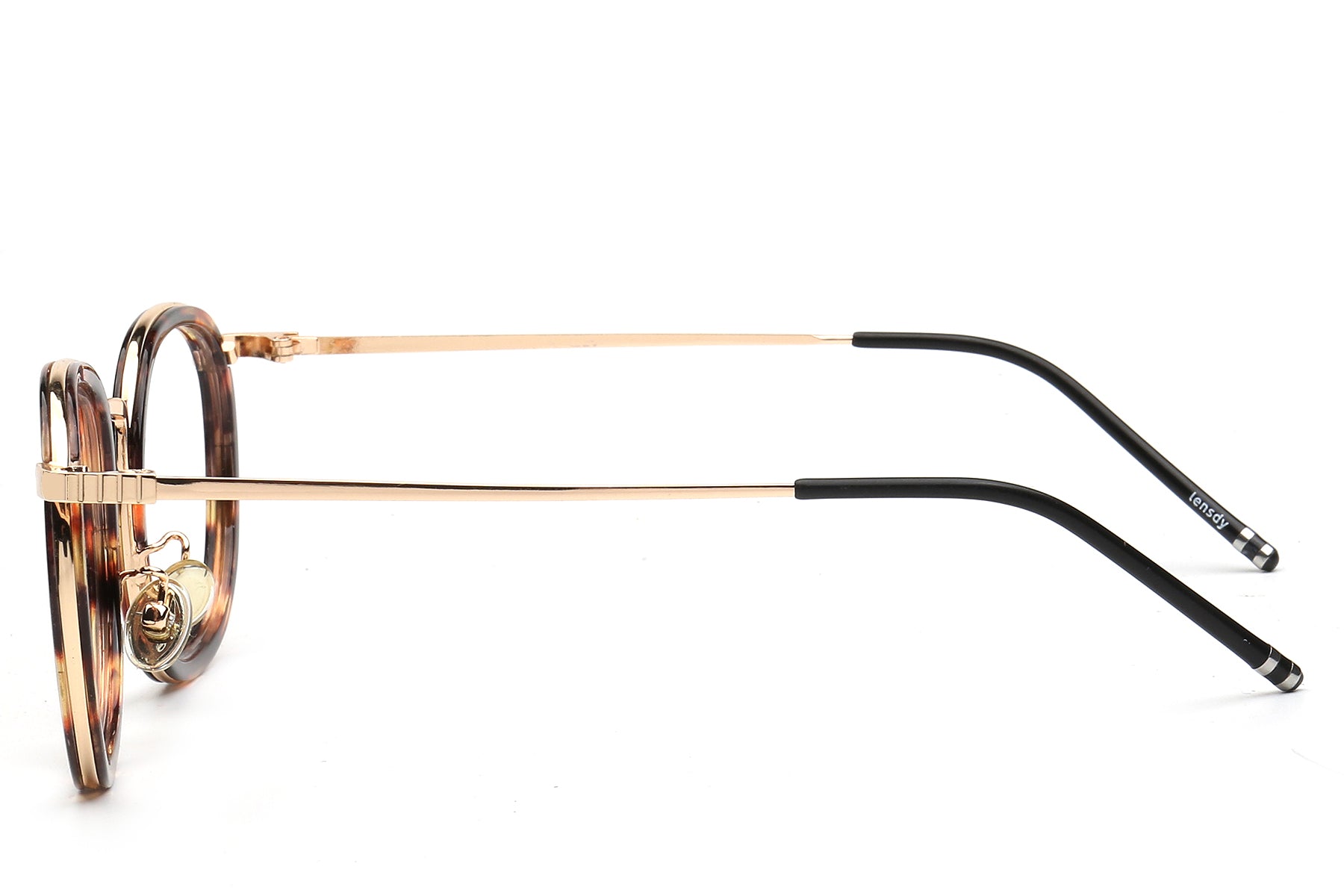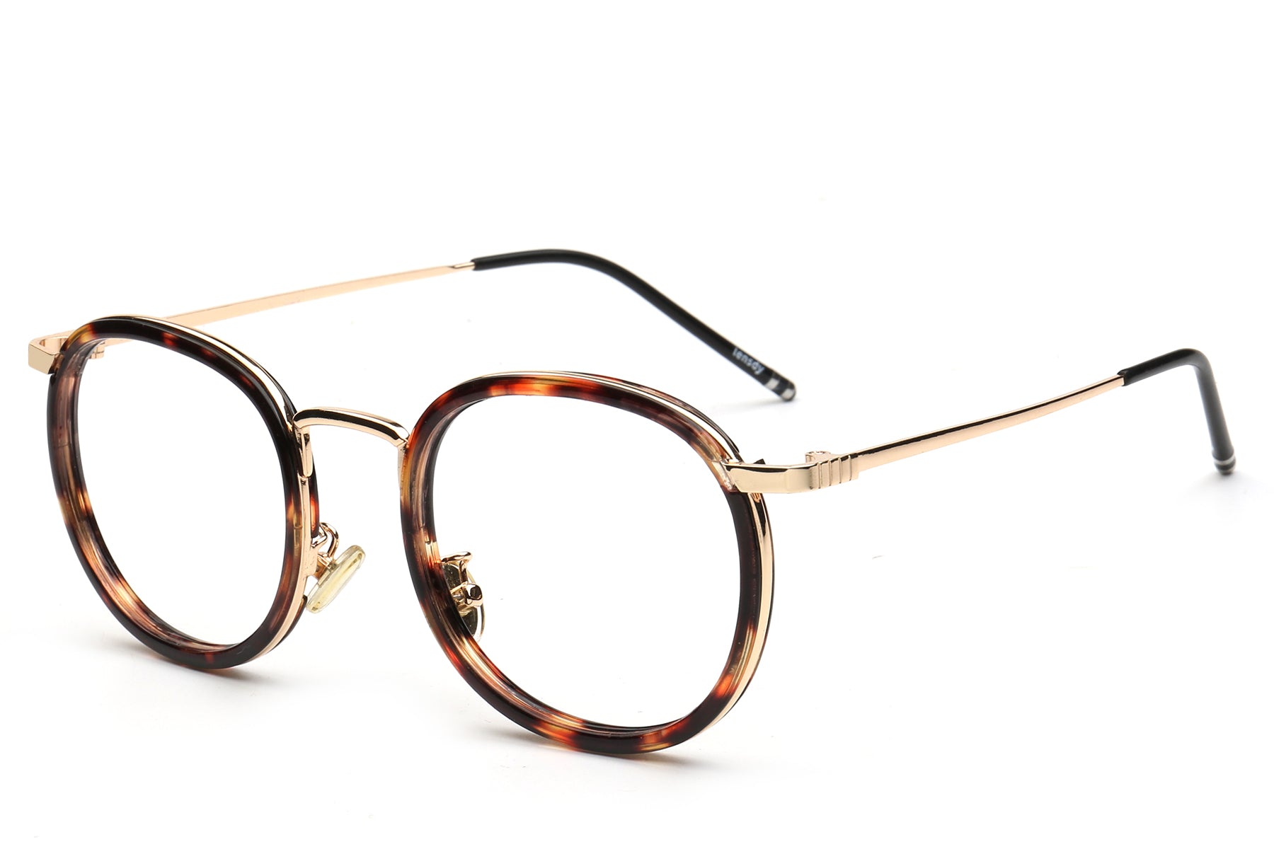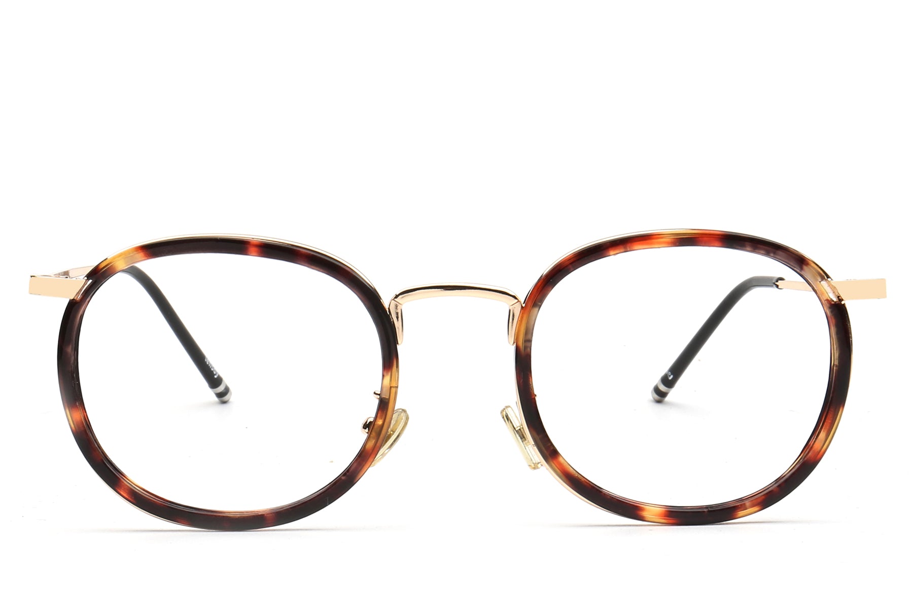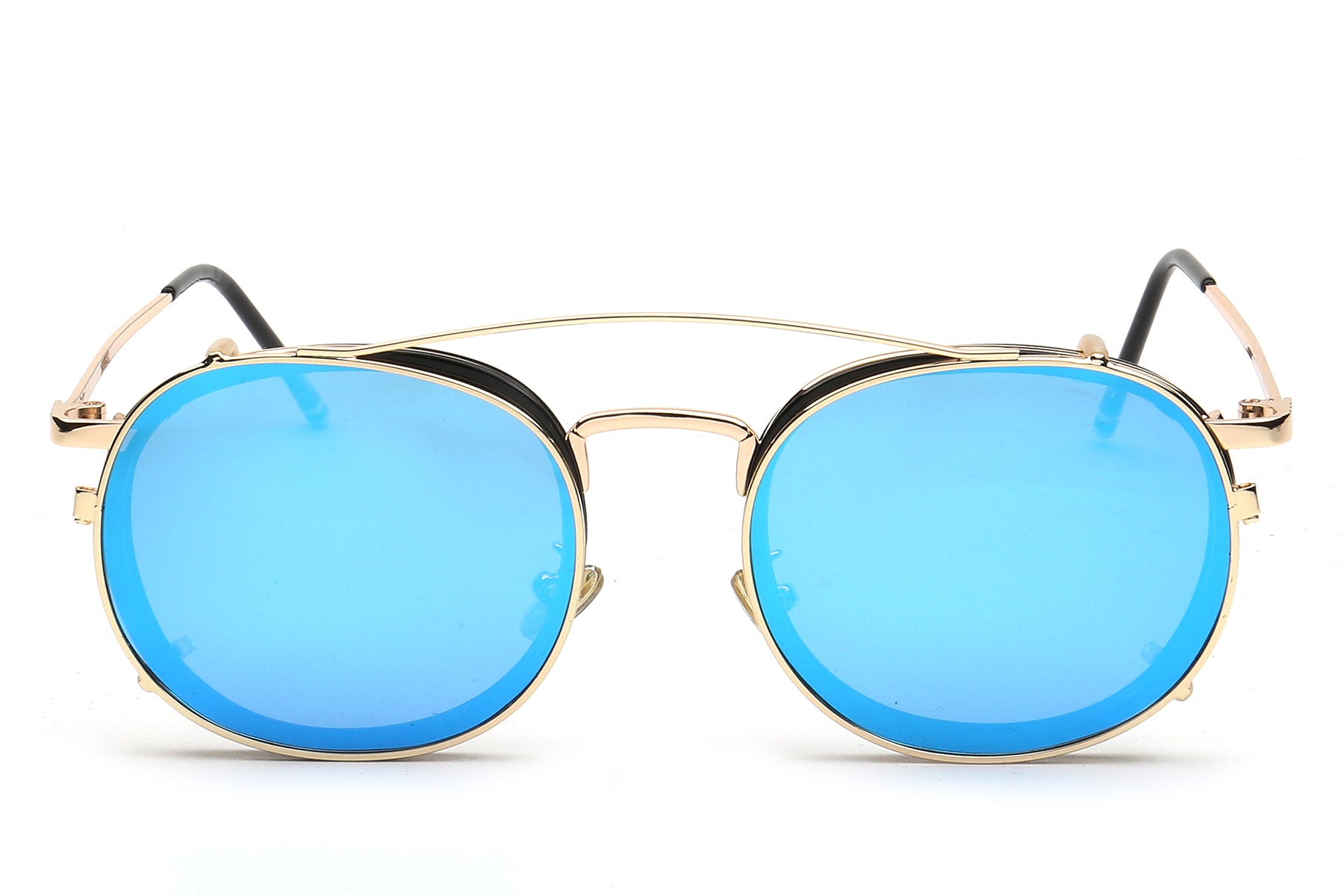 Vintage round-frame optical glasses infuse elegance and classic charm into daily life. The rounded frame shape naturally exudes an artistic touch. The black and gold patchwork design balances the retro feel with a light luxury style. They are not only practical tools for correcting vision but also fashionable accessories that enhance the overall style of your outfit. The striking icy blue lens is a collision of classic and modern elements, catching people's attention.
