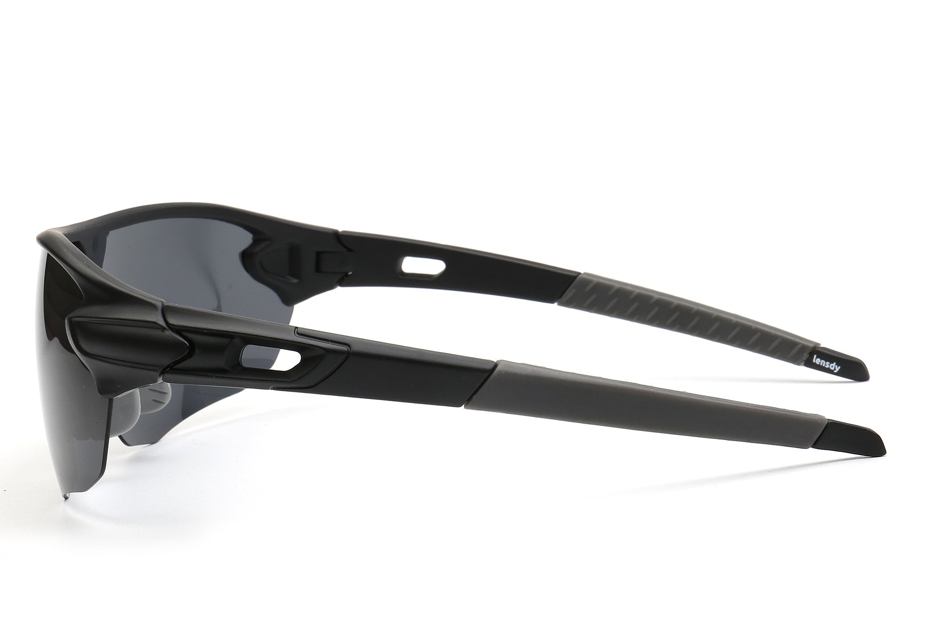 Keywords: semi-rimless sports sunglasses, lightweight running eyewear, black athletic sunglasses, aerodynamic sports glasses