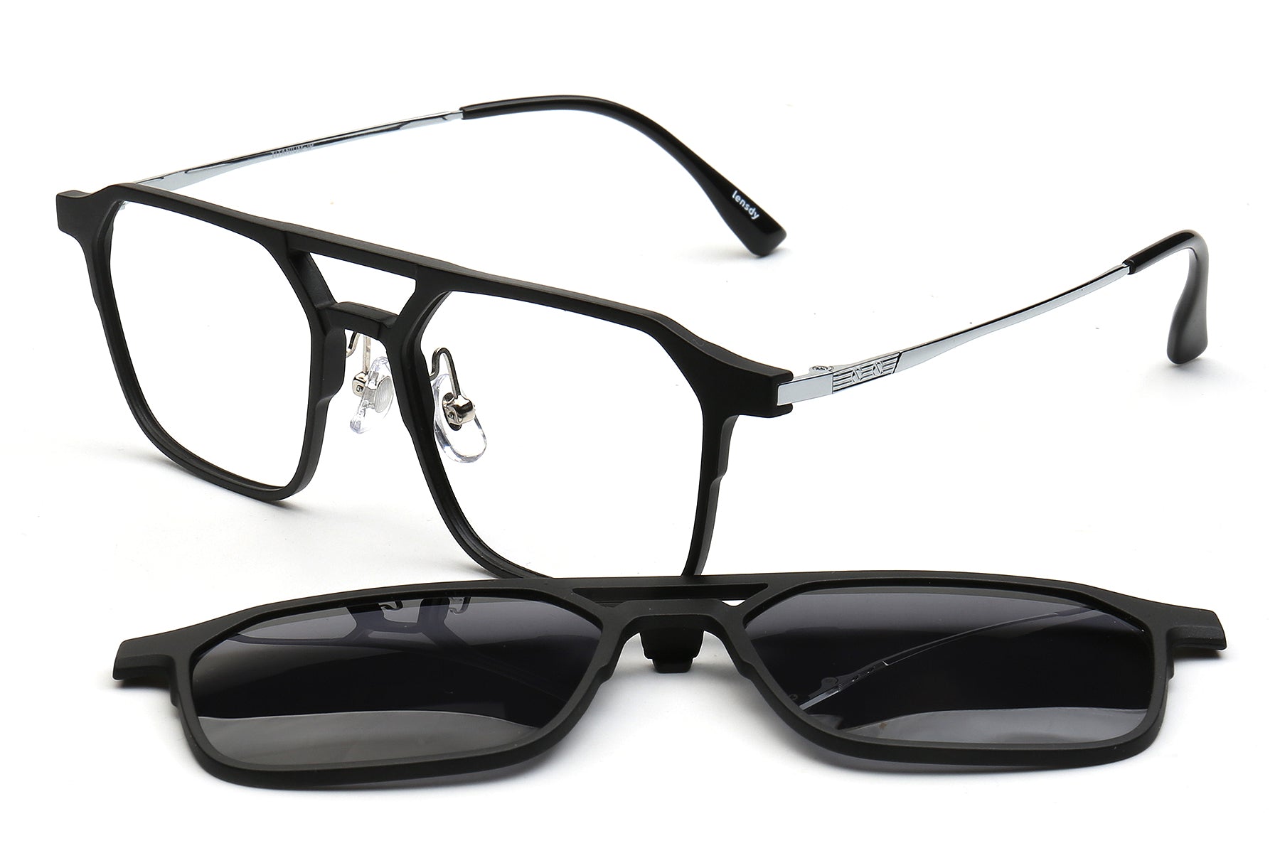 Put on this pair of black-framed magnetic clip glasses, and effortlessly combine the styles of daily life and outdoor activities. The perfect blend of practicality and elegance. The tough square frame suits various face shapes. The matte black + metallic details bring a cool and stylish touch. It is suitable for all scenarios such as commuting, driving, and leisure.