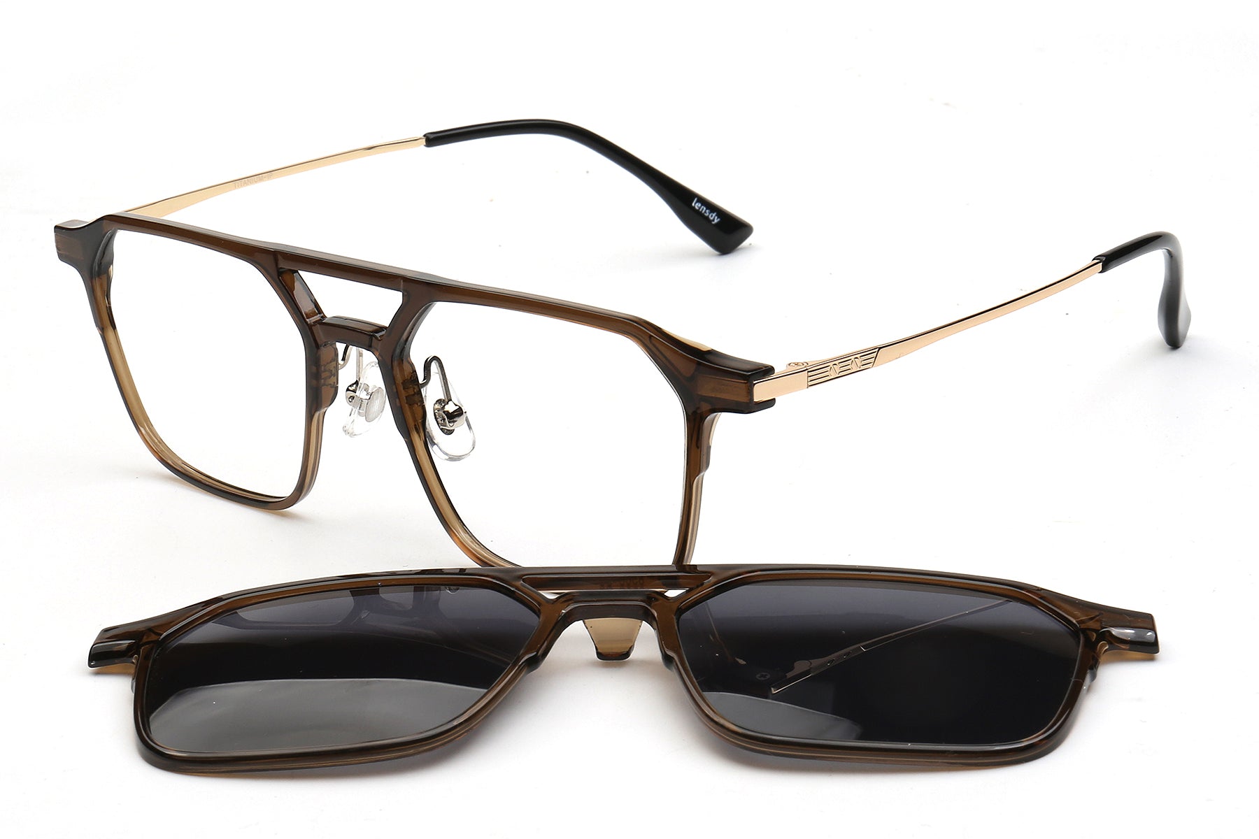 The framework and beams of the polygonal design evoke a sense of classic beauty at a glance. The tea brown color combination softens the sharpness brought by the edges, and seamlessly blends with the winter Malbec outfit.
